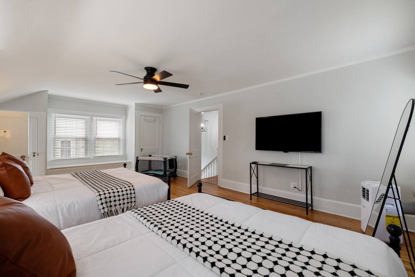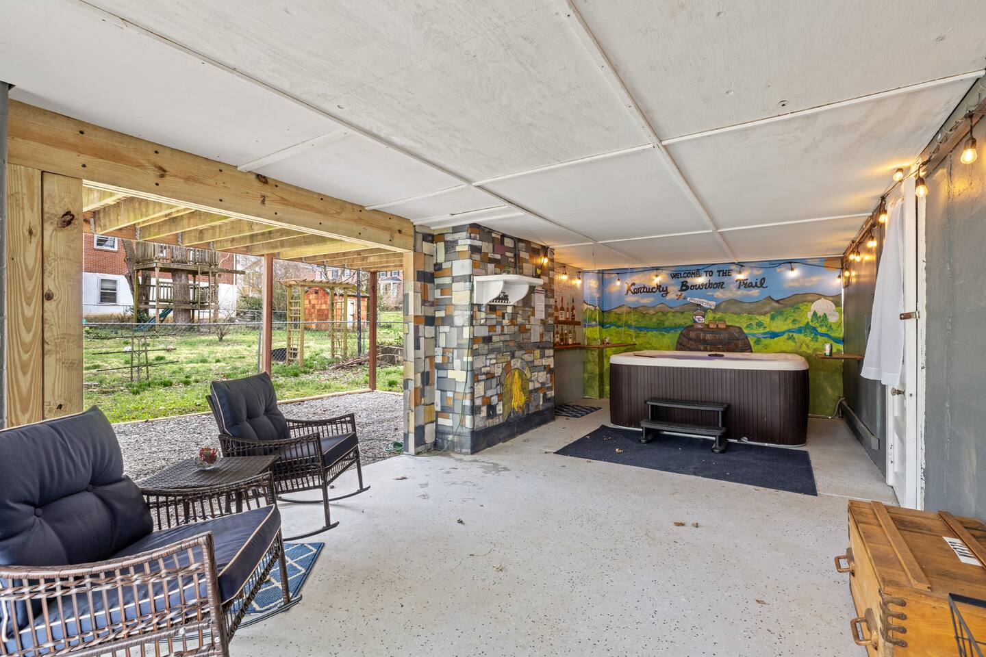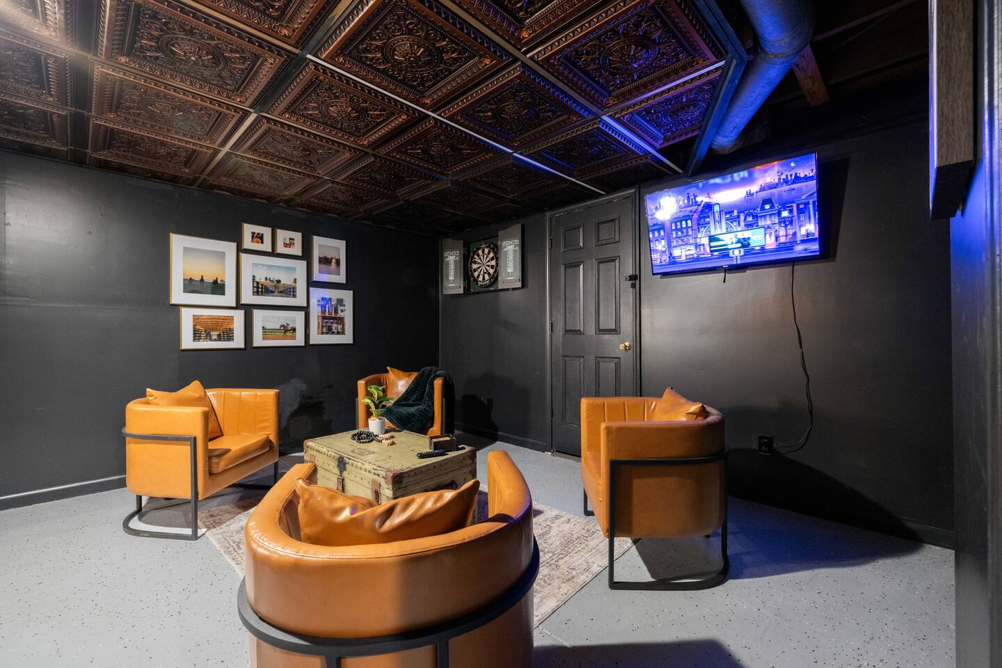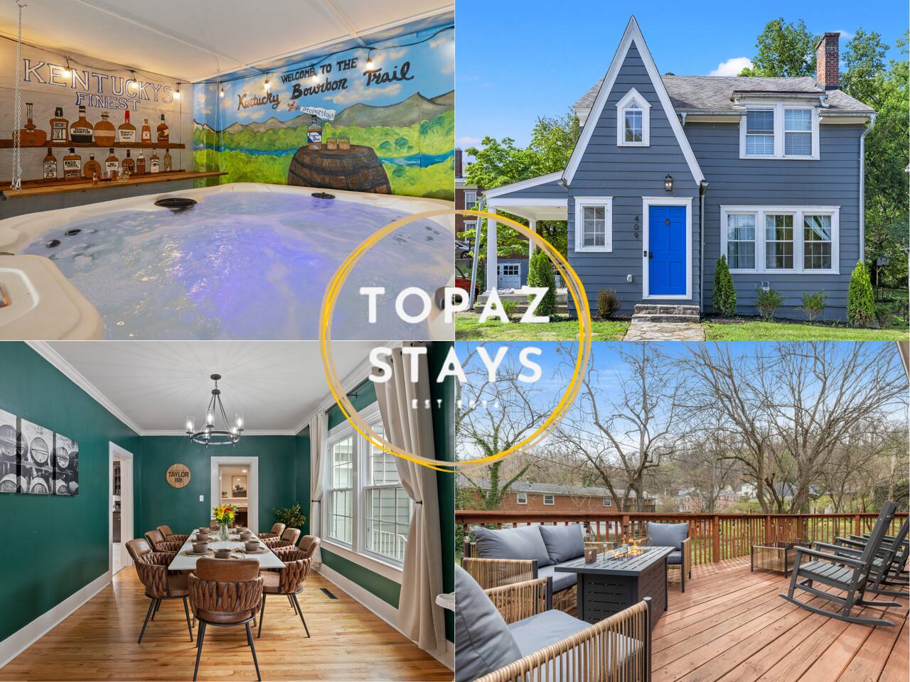 KEY FEATURES: - Hot tub for 6 people - 2 bedrooms on 2nd floor, 1 bedroom on 1st floor - 2 full bathrooms + 1 half bath - Cozy living room with big windows that let light in - Fully equipped kitchen with dinnerware for children - Dining table seating up to 8 - Smart TVs in living area and all bedrooms. No cable. - High speed internet - Pack n play & highchair available - Washer + dryer in basement - Extra gathering spaces in the deck and the basement where there is a card table, games, a record player, a dart board and a Pac man arcade for added fun! This is the perfect place for your stay. Experience the perfect blend of history, comfort, and relaxation at this beautifully renovated and tastefully decorated home. You'll have the entire property, equipped with everything you need for a relaxing experience. What also sets us apart is our commitment to delivering a 5-star guest experience. While you plan your trip, don't forget to add this listing to your wishlist. SEND ME A MESSAGE if you have any questions or requests on how we can make your stay more memorable. ☆☆ BEDROOMS & BATHROOMS ☆☆ * High-quality linen * Soft and firm pillows * Memory foam mattresses * Sound machines & charging stations * Shampoo, conditioner, body wash, and towels are provided * Hair dryers 1st floor: * BR1 with ensuite bathroom with shower & double vanity: 1 king bed * Half bathroom 2nd floor: * BR2: 1 king bed * BR 3: 2 queen beds, pack and play portable crib * 1 full bathroom with tub & shower ☆☆ DOG-FRIENDLY ☆☆ 1 furry friend up to 50 lbs is welcome! A dog bed, 2 bowls, and poop bags are provided. A $50 pet fee will be charged per stay, and another $50 will be added for every additional 2 weeks. ☆☆ KITCHEN & DINING ☆☆ The kitchen is fully-equipped with all the cookware, dishes, and utensils you will need, even for young children. There is a spacious counter where you can craft delicious meals together before gathering around the large dining table that can seat up to 8. We've got you covered - ground coffee, K-pods, tea, creamer, sugar, and honey all available. ☆☆ LOUNGE SPACES ☆☆ Unwind in the luxurious hot tub after your adventures exploring the nearby distilleries or the breathtaking outdoor natural beauty. It is covered so you can use it even when it rains! Gather and relax in our beautifully adorned living space, boasting large windows offering ample natural light and a stunning 65-inch smart TV for your entertainment pleasure. Most guests can't wait and sip their newly purchased bourbon or concoct a fancy cocktail using our bartender tools in the industrial speakeasy basement. Play vintage records and bank core memories while playing board games, darts, card games, poker or Pac man in the basement. Enjoy soaking up the sun on the rocking chairs and outdoor furniture on the balcony where you can get a glimpse of the sunrise everyday. We love to make you feel at home, so you'll find a selection of beverages waiting for you in the fridge downstairs – a little treat for our valued guests! ☆☆ KID AMENITIES ☆☆ Kid amenities such as dinnerware, a pack and play, and a highchair are available so you don’t need to bring your own. ☆☆ PARKING ☆☆ Ample parking on the street (free) 🥃 Drink: Buffalo Trace Distillery - 2.5 miles J. Mattingly 1845 Distillery - 2.6 miles Glenns Creek Distilling - 5.7 miles Castle & Key Distillery - 6.5 miles Whiskey Thief Distilling Co. - 9.3 miles Woodford Reserve Distillery - 10 miles Bluegrass Distillers at Elkwood Farm - 12 miles Wild Turkey Distillery - 16 miles Bulleit Distilling Co. - 17 miles Four Roses Distillery - 18 miles James E. Pepper Distillery - 24 miles Barrel House Distilling Co. - 24 miles Lexington Brewing & Distilling Co. - 25 miles Jeptha Creed Distillery - 26 miles 🌟 Explore Rebecca Ruth Candy Tours & Museum - 0.5 miles (home of the Bourbon Ball!) Capitol Building - 1 mile The Bourbon Boat/Kentucky River Tours - 1 mile Canoe Kentucky - 1.5 miles The Kentucky Castle - 19 miles Kentucky Horse Park - 26 miles Kentucky PGA/Golf House Kentucky - 41 miles Ark Encounter - 46 miles Bardstown Bourbon Company - 54 miles Churchill Downs (Louisville/Derby) - 54 miles BOOK NOW and let us take care of you at The Frankfort Blue! ☆☆ OTHER DETAILS TO NOTE ☆☆ * Guests must sign a rental agreement online upon booking. * It only takes a few minutes and ensures safe, proper use of the amenities. * Check-in instructions will only be released once the waiver is signed. * Early check-in: 2:00 PM ($50, if available) * Late check-out: 1:00 PM ($50, if available) * Availability is confirmed by 4:00 PM the day before arrival * The hot tub is accessed by going outside and down a short set of stairs into the backyard. * The home has central air but if you need additional cooling upstairs, there is a portable AC unit and ceiling fan in each bedroom. * The 2 fireplaces are purely decorative. * The yard is not fully fenced. * Food & grocery delivery is welcome during your stay. * Packages and mail cannot be sent to the property before, during, or after your stay. * We are unable to guarantee forwarding or return of any deliveries. * The property is child-friendly but not childproofed. Guests are fully responsible for supervising children and ensuring their safety during the stay. Use of any child-related items is at the guest’s own risk. * Service & emotional support animals must be disclosed within 24 hours of booking. Pet Fee is waived only for legitimate service or emotional support animals in which the animals are never left behind without the owner. Evidence that the animals were left behind will result in a pet fee of $150 being charged.