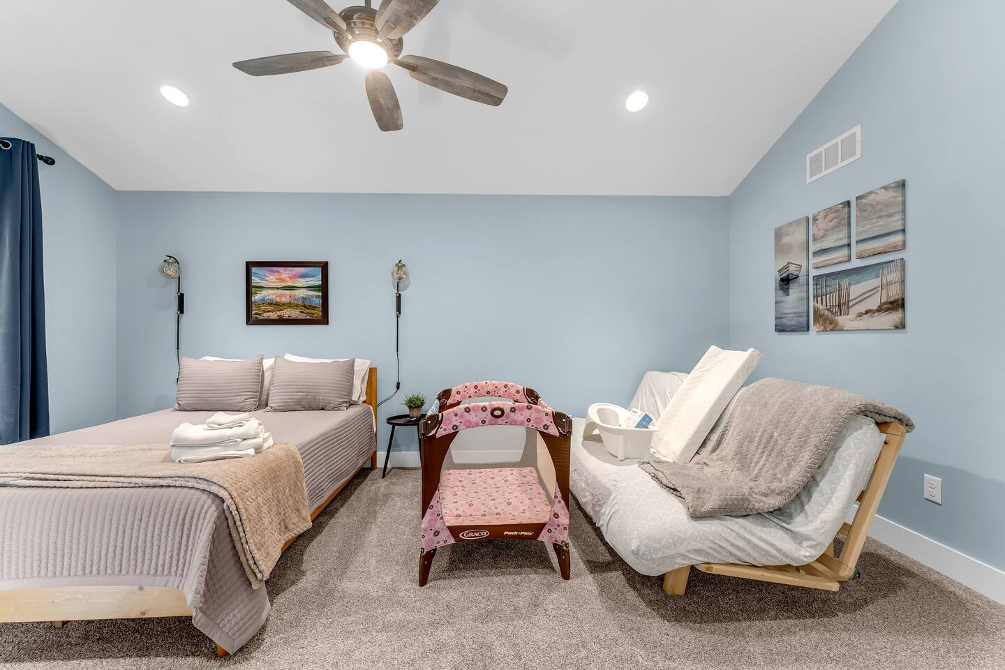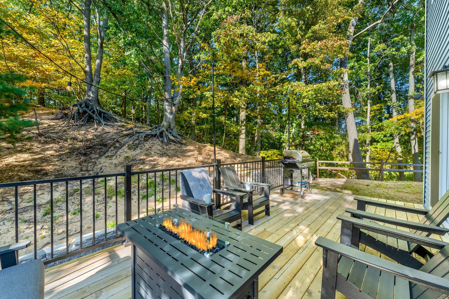 KEY FEATURES: - Fully equipped kitchen with dinnerware for children - Dining table seats 10, additional counter seats 3 - Pack n play, high chair, infant bathtub available - Blackout curtains - Designed for comfort—beds and linens our guests rave about - Convenient 2nd floor washer + dryer - High speed internet - Roku-enabled TVs in living area & bedrooms. No cable. - 10 minutes to the beach/Lake Michigan - 2 person indoor infrared sauna - 3 bedrooms on second floor, 2 full baths + 1 half bath - Cozy and stylishly sized living room with an electric fireplace and big windows looking out into nature - Small pingpong table, Pong arcade, poker table, life size Connect 4 - BBQ grill, beach umbrellas, towels, toys and wagon available (Memorial Day to Labor Day weekends) While you plan your trip, don't forget to add this listing to your wishlist. SEND ME A MESSAGE if you have any questions or requests on how we can make your stay more memorable. Here are a few kind words from our past guests: "I have stayed in many Airbnbs in many states and this one has been the absolute best. It’s better than a five star hotel. Great host great place and I wholeheartedly recommend it. It’s a shame that you can only give five stars." - Eliud "So much space for all of us, large bedrooms, a well appointed Kitchen... We really appreciated all of the dishes, kids dishes, pots/pans, and kitchen supplies. It made cooking over the holidays as easy as if we were at home." - Adam "...a peaceful wood-like setting even though it was in a neighborhood. We even saw deer right outside our window! We enjoyed the trail in Dune Park. Plenty of restaurants and grocery options just 6 minutes away. " - Emily ☆☆ BEDROOMS + BATHROOMS ☆☆ First Floor: Living room: 1 full-sized sleeper sofa Half bathroom Second Floor: Primary BR with ensuite bathroom with shower: 1 king bed, 1 super comfy queen futon, pack and play BR 2: 1 queen bed BR 3: Queen bed with queen trundle Another full bathroom with tub/shower combo * High-quality linen * Blackout curtains, * Memory foam mattresses * Sound machines * Power strips with USB ports * Pack n play, infant tub, and audio monitors ☆☆ KITCHEN & DINING ☆☆ * Large open kitchen with spacious island * Fully-equipped with all the cookware, dishes, utensils and basic spices you will need * Kid-friendly dinnerware * High chair ☆☆ LOUNGE SPACES ☆☆ * Spacious living area with high ceilings and large windows * Serene views of the beautiful trees and the yard where deer and turkey visit frequently * Basement game room: Ping pong, Pong, poker/card table * Deck with BBQ grill, outdoor plush couch and firepit table (Memorial Day-Labor Day) ☆☆ KID-FRIENDLY ☆☆ * Kid-friendly dinnerware * High chair * Infant tub * Pack and play * Board games, books, and toys * Neighborhood park with a playground 3-min walk ☆☆ VERY NEAR LAKE MICHIGAN ☆☆ Soak up the beauty of Lake Michigan as you unwind on the private neighborhood beach, splash in the waves, or take in breathtaking views from the shared deck. Beach access is via stairs and varies with water levels and may be limited or inaccessible on some days—but no worries! Just a 10 minute drive away, Pere Marquette offers a stunning, expansive shoreline with easy, flat access for all-day lakefront fun. BOOK NOW and let us take care of you at The Norton Nook! ☆☆ OTHER DETAILS TO NOTE ☆☆ * Guests must sign a rental agreement online upon booking. * It only takes a few minutes and ensures safe, proper use of the amenities. * Check-in instructions will only be released once the rental agreement is signed. * Early check-in: 2:00 PM ($50, if available) * Late check-out: 1:00 PM ($50, if available) * Availability is confirmed by 4:00 PM the day before arrival * Basics/starting supplies provided. Please make sure you bring extra in case you need more. * Food and grocery delivery is welcome during your stay. However, no packages or mail may be sent to the property before, during, or after your stay, as we cannot guarantee forwarding or return. * There are 3 steps leading up to the front door. * All bedrooms are on the second floor. The stairs are padded and carpeted and has a handrail. Please take caution when going up and down to avoid accidents. * The property is not fully fenced. Do not leave your children or service animal unattended. * The basement is unfinished but has ample heat/air. It is set up as a game room for you to enjoy. The infrared sauna is in that space as well. * For stays longer than 3 weeks, our cleaning fee is $399. To maintain our high standards, we require a professional cleaning by our team every 4 weeks (laundry not included), and the additional cleaning fees will be applied.