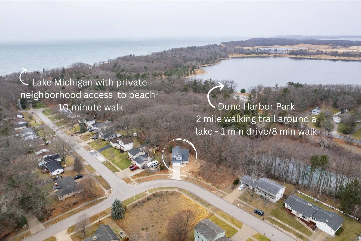This home built in 2023 is a rare find with its prime location in Norton Hills Estates subdivision. The neighborhood has a a private and paved neighborhood access to Lake Michigan, as well as private tennis and basketball courts and a playground.